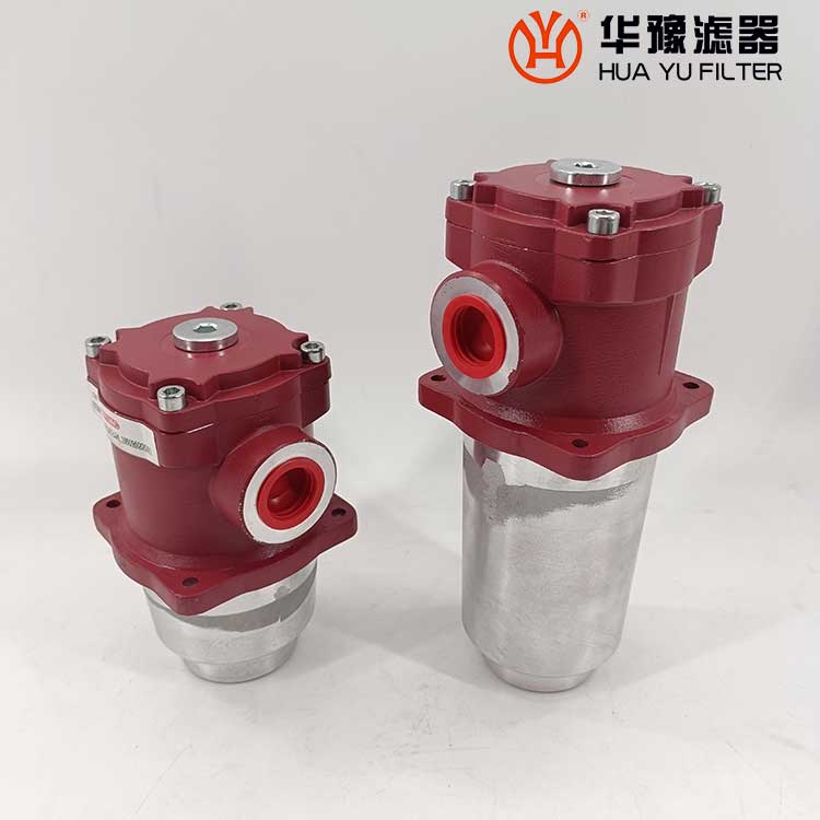 該過濾器的濾芯采用化纖過濾材質(zhì),具有過濾精度高,通油能力大,初始壓力損失小,納污量大等優(yōu)點(diǎn),并裝有壓差發(fā)訊器及旁通閥。當(dāng)濾芯堵塞到進(jìn)出油口壓差為0.35MPa時,便發(fā)出開關(guān)信號,此時應(yīng)更換濾芯。如果不能馬上停機(jī)或無人來更換濾芯,裝在濾芯上部的旁通閥會自動開啟,以保護(hù)系統(tǒng)。