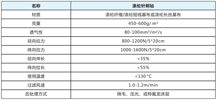 滌綸針刺氈是采用非織造工藝利用纖維交錯排列,空隙分布均勻的細纖維布,以滌綸短纖維與滌綸有捻紗所生產(chǎn)的針刺氈,表面經(jīng)熱軋、燒毛或涂層等后處理,使其表面平整光滑,不易被粉塵所堵塞,此濾料空隙率大,透氣性能較好,用途極為廣泛,抗化學穩(wěn)定性強,不僅可以過濾常溫氣體,而且可過濾含有酸堿的腐蝕性氣體,并可濾水、濾油,是常溫工況。液固分離等領域理想的過濾材料。