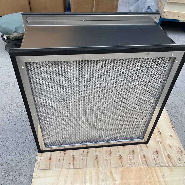有隔板高效過濾器是用超細纖維作濾料、優(yōu)質牛皮紙熱滾壓成形或采用膠版紙、鋁鉑作分隔板,與木框或鋁合金框膠和而成,具有過濾效率高,阻力低,風量大的優(yōu)點。有隔板高效過濾器多采用雙面上膠的銅版紙作分隔板,目的是為了防止分隔板受冷熱干濕的影響發(fā)生收縮,從而散發(fā)顆粒。適合于低級別的非單向流項目與各種凈化設備和潔凈廠房。有隔板過濾器中,鋁隔板過濾器主要用于高溫或高濕環(huán)境,紙隔板過濾器用在普通潔凈環(huán)境。有隔板風量相對較大,可以用作耐高溫過濾。