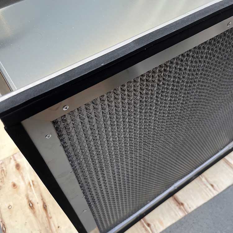 采用超細玻璃纖維紙作濾料,膠版紙、鋁膜等材料作分割板,與木框鋁合金膠合而成,采用特殊硅橡膠制作,無氣味,表面不會硬化,時間長也不會有裂紋,化學性能穩(wěn)定,耐腐蝕,可吸收熱脹冷縮產生的應力而不會開裂,軟硬度適中,彈性恢復好。每臺均經鈉焰法測試,具有過濾效率高、阻力低、容塵量大等特點。