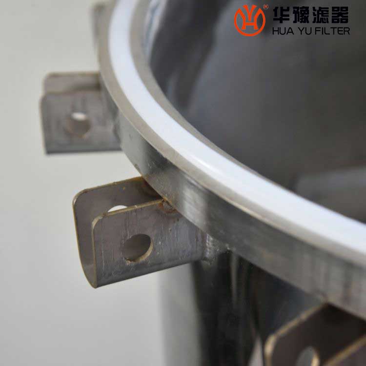液體從上進(jìn)口法蘭流入,進(jìn)入濾袋內(nèi)測(cè),固體雜質(zhì)顆粒在通過(guò)濾袋時(shí),被攔截在濾網(wǎng)上,支撐網(wǎng)籃是用來(lái)支